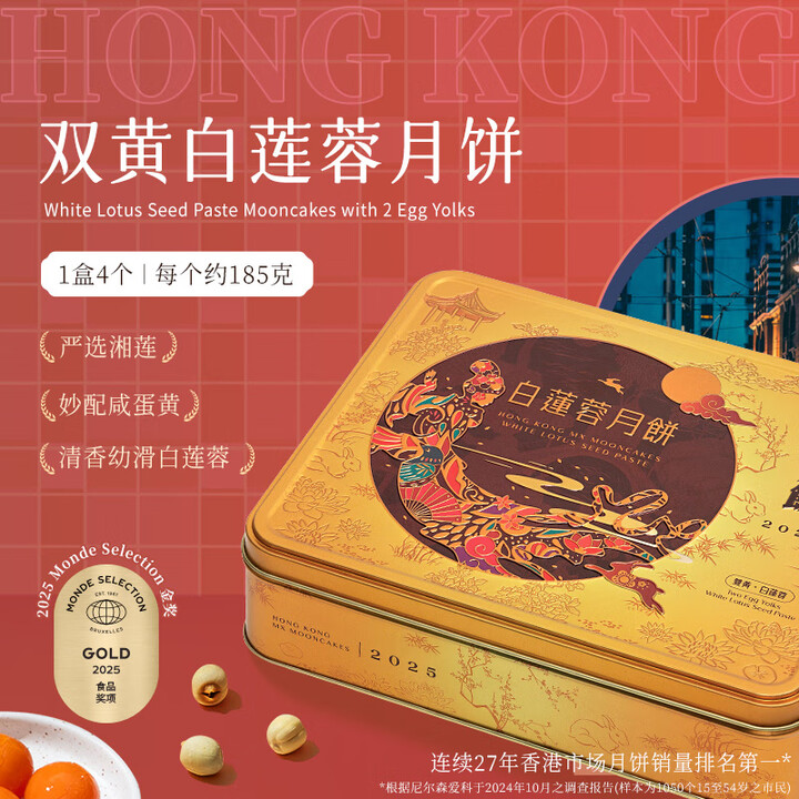 美心(Meixin)双黄白莲蓉港式月饼礼盒740g